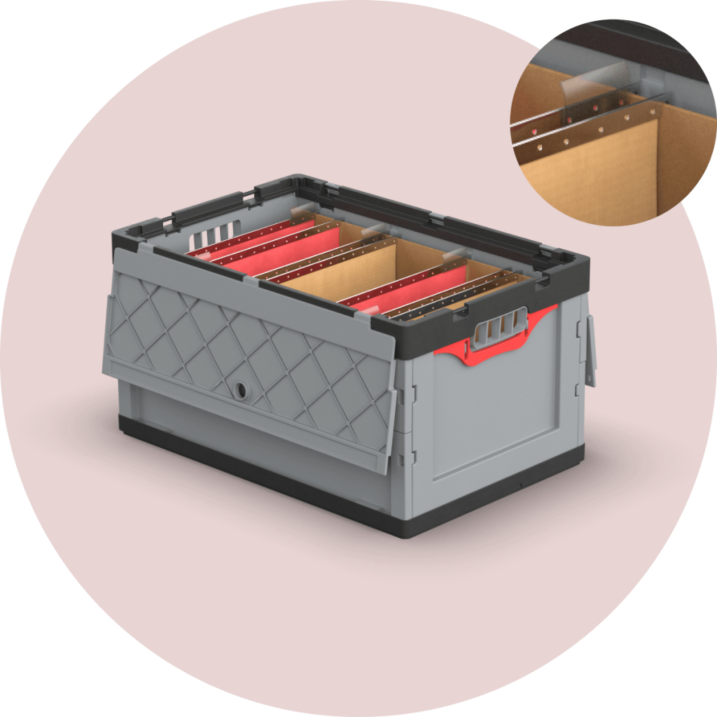Für die übersichtliche Beschriftung erhalten Sie von LeihBOX kostenlose Etiketten oder Sie können Ihr eigenes System verwenden. Die Zügelboxen für Hängemappen von LeihBOX sind alle mit Deckel versehen und lassen sich einfach mit Plomben versehen.
