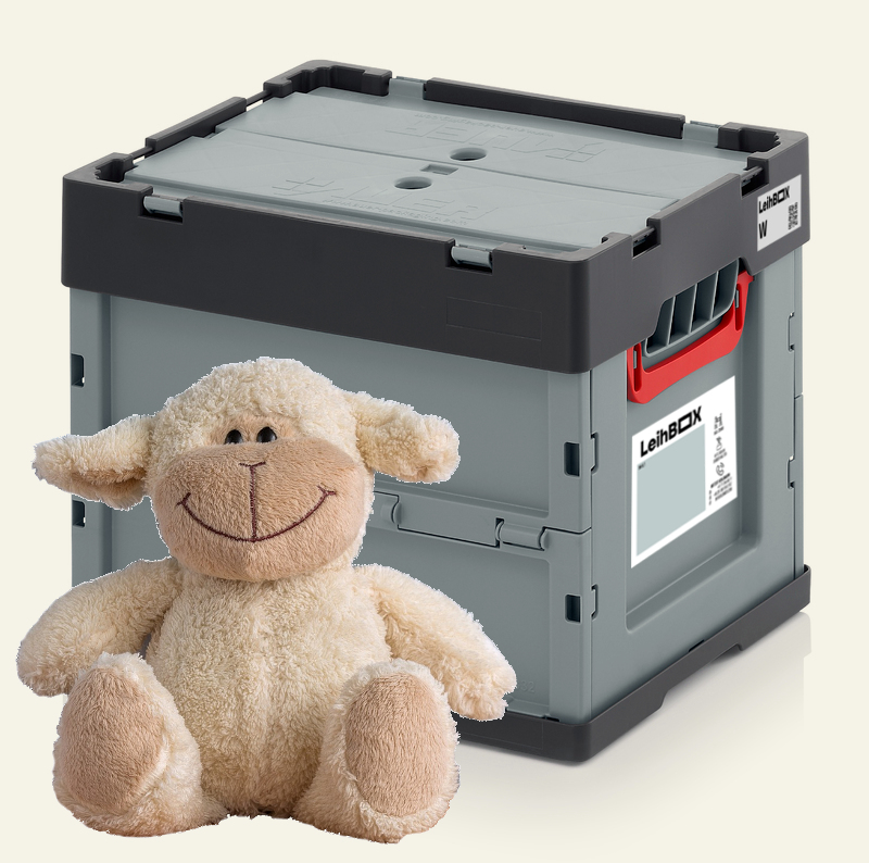 A votre demande, nous avons ajouté à notre assortiment une petite LeihBOX pour les enfants. Avec ses dimensions de 40 x 30 x 32 cm (L x l x H), la LeihBOX ‘W’ est exactement deux fois plus petite que la LeihBOX ‘M’. La boîte de déménagement pour enfants est tout aussi pliable et empilable. Et comme la LeihBOX des parents, la LeihBOX des enfants a un couvercle rabattable. Deux LeihBOX pour enfants placées côte à côte s’adaptent parfaitement au chariot de transport.